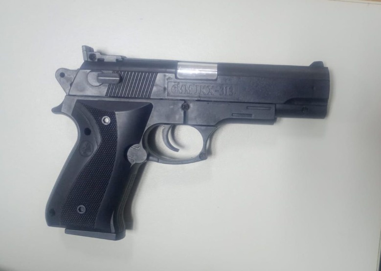 Durante a abordagem, os policiais localizaram o jovem e, com ele, apreenderam uma réplica de arma de fogo.