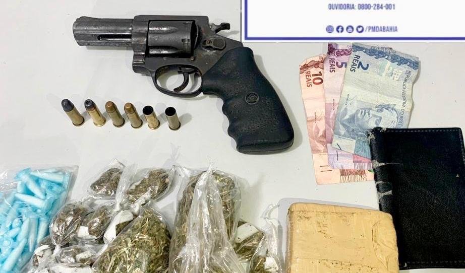 Guarnições das Rondas Especiais (Rondesp) Atlântico apreenderam arma, munições e cerca de 1,5 kg de entorpecentes, no Engenho Velho da Federação, na noite de terça-feira (30). Materiais foram localizados durante reforço das ações ostensivas no bairro.