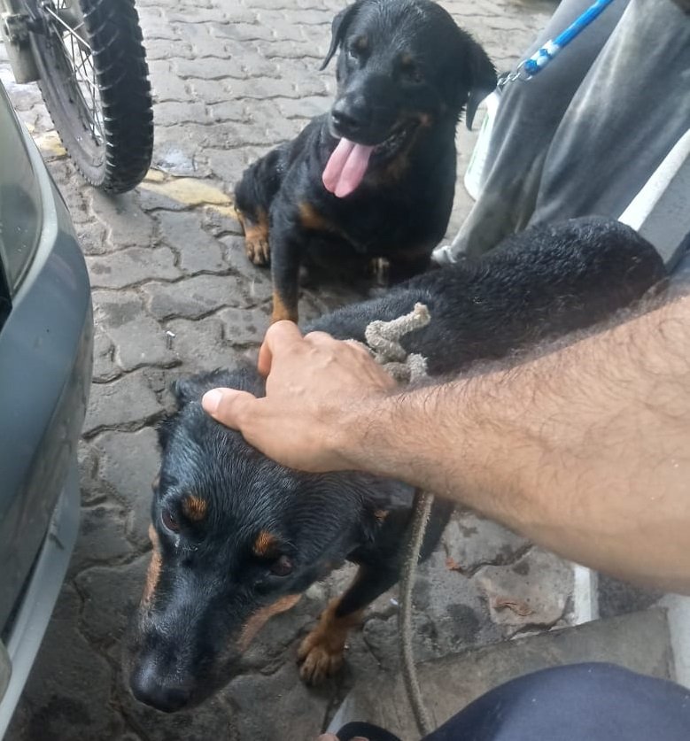Dois cães da raça Rottweiler foram resgatados, durante a manhã da quarta-feira (25), por equipes da Companhia de Polícia de Proteção Ambiental (Coppa), após moradores da região da baixinha do São Gonçalo do Retiro informarem aos policiais que um homem maltratava e mantinha os animais em situação de risco.