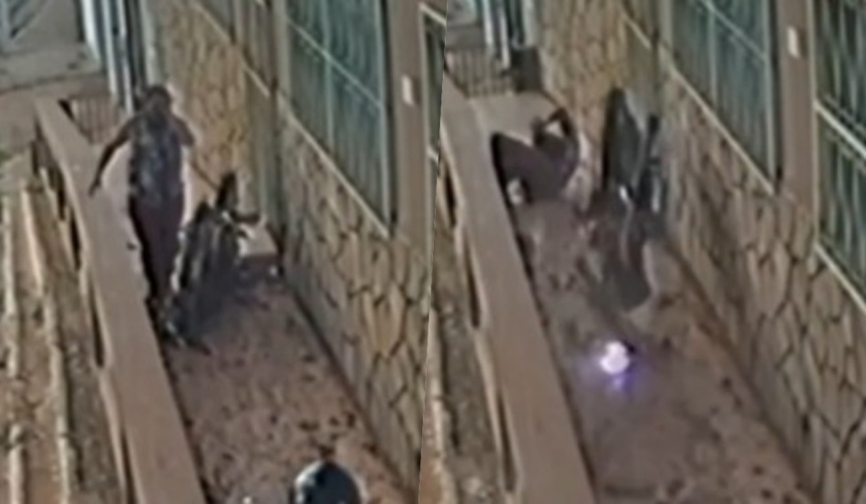 As imagens mostram o instante exato da colisão. Com o impacto, o condutor é arremessado alguns metros à frente. Ele permanece sentado no chão por alguns segundos, depois se levanta, se apoia em outra estrutura e segue caminhando com dificuldade.