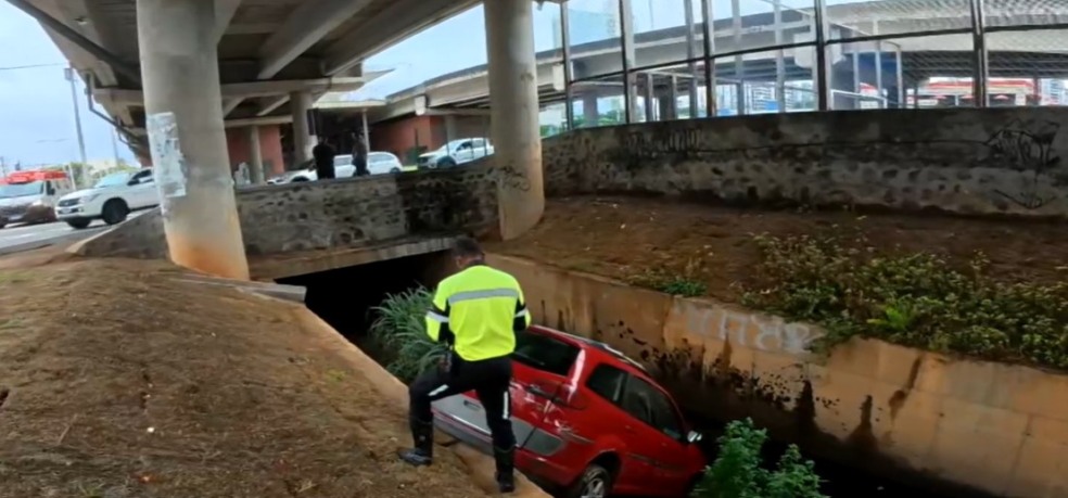 Um carro caiu em uma vala na manhã desta quinta-feira (23), na Avenida Antônio Carlos Magalhães (ACM), nas imediações da antiga sede do SineBahia, sentido Rio Vermelho e Lucaia.