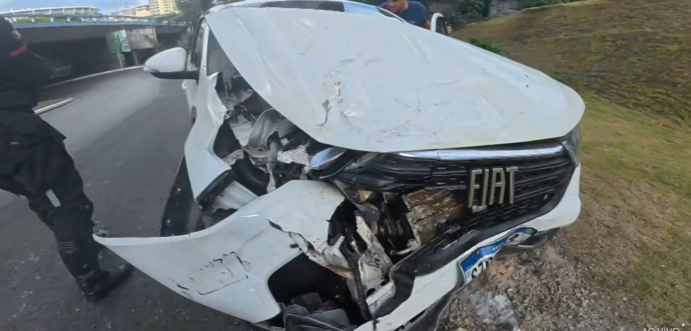Um carro que havia batido em uma pilastra da estrutura do metrô, na região do Dique do Tororó, em Salvador, foi identificado na manhã desta segunda-feira (10) como veículo roubado. De acordo com informações da TV Bahia, o automóvel havia sido tomado de assalto na noite anterior, por volta das 21h, na região da Ondina.