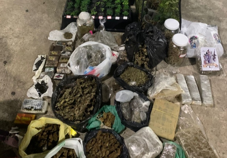 Ainda de acordo com a PM, os agentes fizeram buscas no imóvel e encontraram três estufas com 40 pés e 40 mudas de maconha, 17 tabletes de haxixe, oito embalagens com maconha prensada, três quilos da droga sintética conhecida como “Wolf”, 50 porções de óleo de Cannabis sativa, um frasco de lança-perfume e uma porção de cocaína.