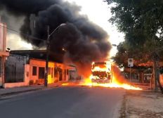 Pelo menos três ônibus do transporte coletivo, dois carros da empresa Enel Distribuição Ceará e um carro da Companhia de Água e Esgoto do Ceará (Cagece) também foram incendiados em Fortaleza nesta segunda-feira (23). Testemunhas afirmam que homens colocaram fogo nos veículos usando gasolina. As ações começaram por volta de 12h. Uma pessoa ficou ferida.