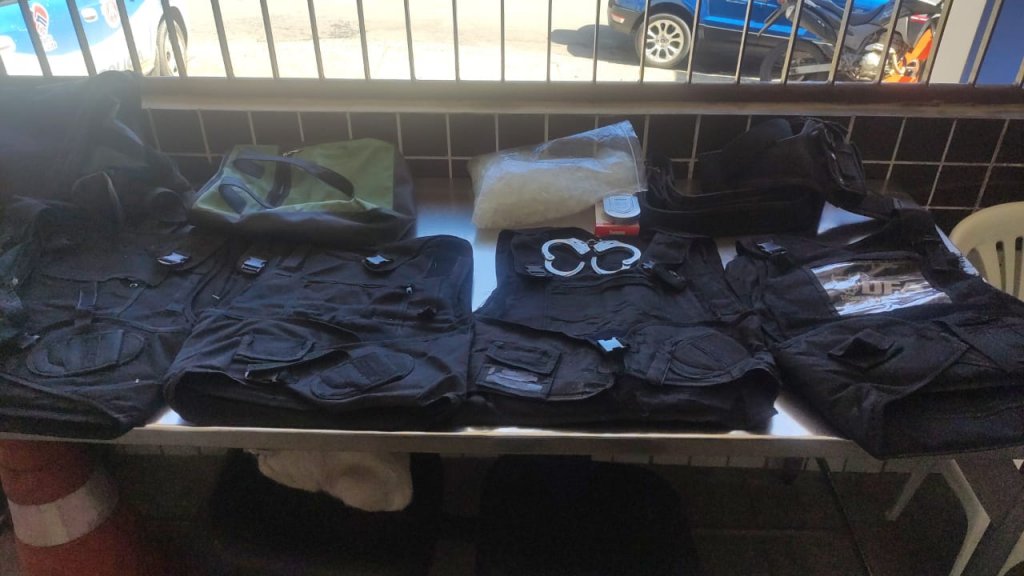 Além dos coletes também foram encontrados um par de algemas, balaclava, um saco com pinos para embalar cocaína e uma balança. O material foi apresentado na 11ª Delegacia Territorial (DT) de Tancredo Neves.