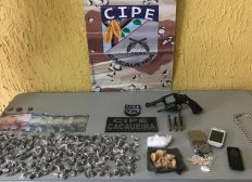 Dentro da casa os PMs encontraram mais três criminosos (dois adultos e um adolescente) ainda não identificados. Com a quadrilha foram apreendidos um revólver calibre 38, munições, 204 trouxas de maconha, 51 pedras de crack, uma porção de cocaína, balança e embalagens plásticas.