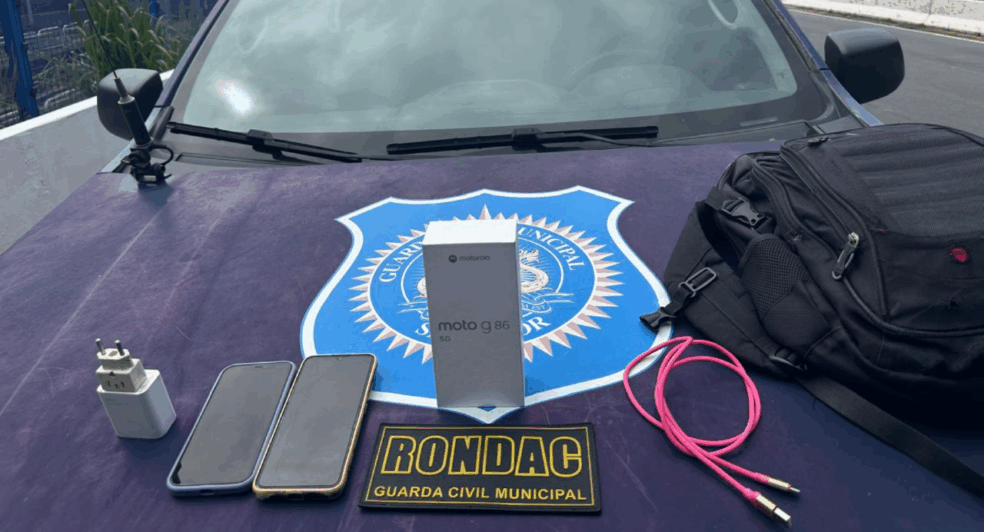 De acordo com a GCM, a dupla, que estavam em uma motocicleta fazia manobras em alta velocidade. O passageiro chamou atenção, pois tentava cobrir a placa durante a fiscalização. Durante a abordagem os agentes encontraram vários aparelhos eletrônicos numa mochila. Um deles estava lacrado.