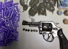 Com o traficante foram apreendidos um revólver calibre 38, munições, 58 pinos de cocaína, 13 porções de maconha, 222 reais e um celular.