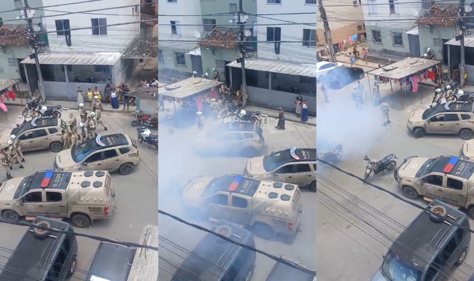 Em imagens enviadas ao PS Notícias, é possível ver o momento em que a guarnição tenta conter os moradores.