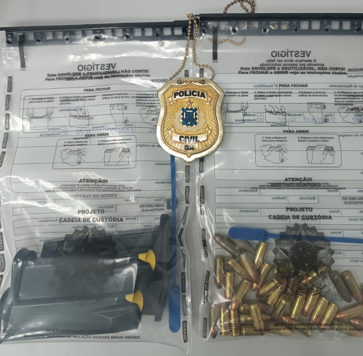 Durante a ação, os policiais localizaram o homem, que tem registro de Colecionador, Atirador Desportivo e Caçador (CAC). Após ser informado da decisão judicial, o homem permitiu a entrada no imóvel e indicou o compartimento onde os itens estavam armazenados. Dentro de um cofre, os agentes encontraram duas pistolas calibre 9mm e quatro carregadores, além de 37 munições. Assim, o material foi recolhido e encaminhado para custódia.