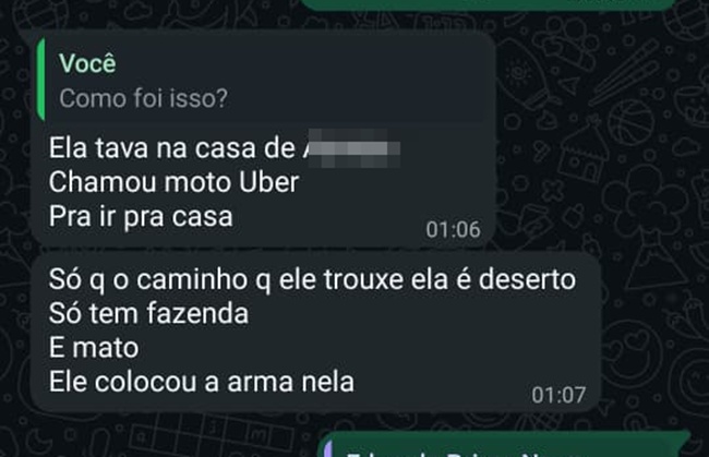 De acordo com informações da Polícia Civil, durante o trajeto, o motociclista desviou a rota e a levou para uma área de matagal, onde, armado com um revólver, rendeu a jovem e cometeu o crime.
