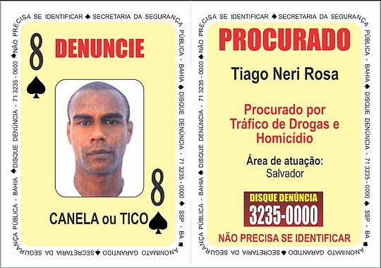 Quando a Secretaria de Segurança Pública (SSP) estampou o rosto de Tiago Neri Rosa, 36 anos, em outubro do ano passado, no Baralho do Crime, ele era o 8 de Espadas, conhecido como Canela ou Tico. Apesar de não ter havido mudanças no carteado da SSP, no jogo do Bonde do Maluco (BDM), Tiago atualmente era o Rei de Espadas e passou a ser chamado de “Coroa” e “Presidente” – expressões usadas para definição de chefe supremo.