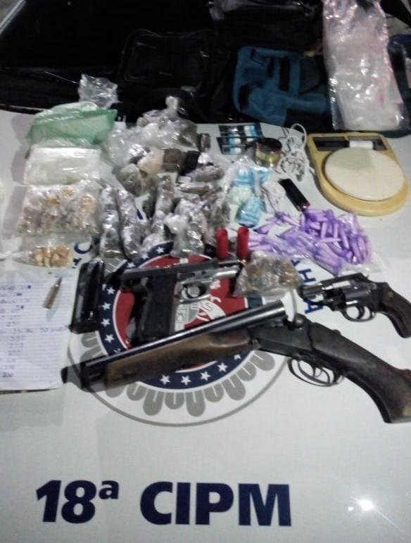 Com informações de que a dupla estaria no bairro, os militares ampliaram o patrulhamento e inteceptaram Cabeça e Bruno com uma espingarda calibre 12, uma pistola calibre 380, um revólver calibre 38, carregadores, munições uma farta quantidade de cocaína e embalagens plásticas.