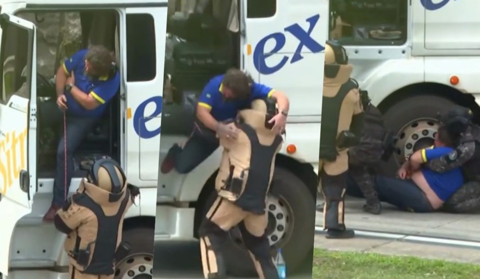 O homem estava sozinho na cabine quando as equipes de resgate e da PM chegaram ao local. Imagens aéreas divulgadas pela TV Globo mostram o momento em que ele é retirado do caminhão e recebe atendimento médico.
