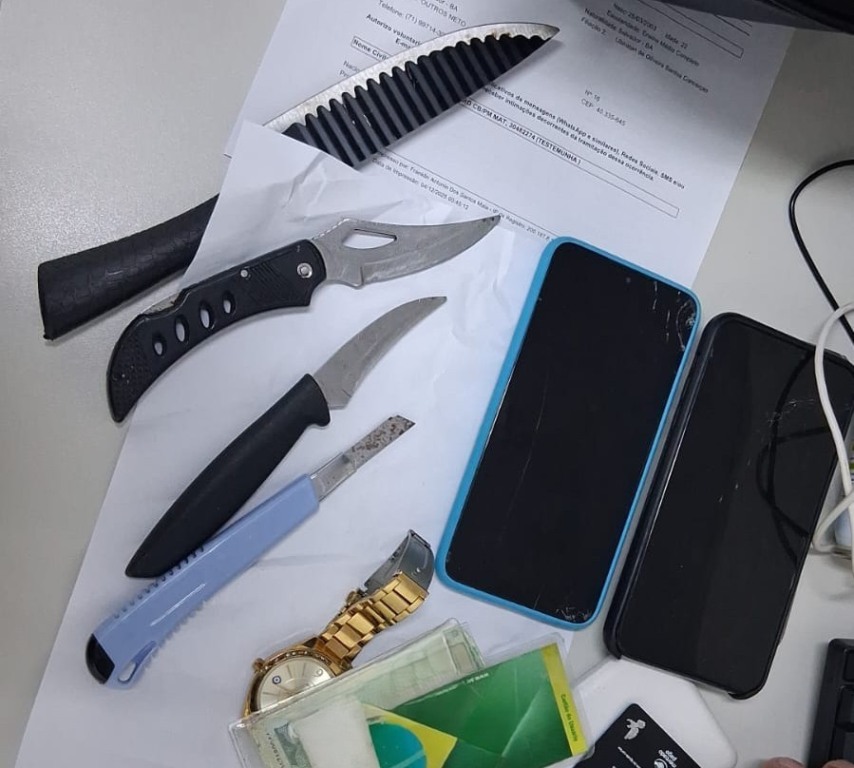 Uma mulher foi presa na noite desta quarta-feira (3), portando armas brancas na região da Fonte Nova, no bairro de Nazaré, em Salvador.