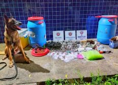 No local, os PMs apreenderam uma pistola calibre 9mm, carregadores, munições de calibres 40, 45 e 9mm, cerca de 5,5 kg de maconha, meio quilo de cocaína, 2.500 pinos e embalagens plásticas, duas balanças, uma caixa térmica e um caderno com a contabilidade da quadrilha.