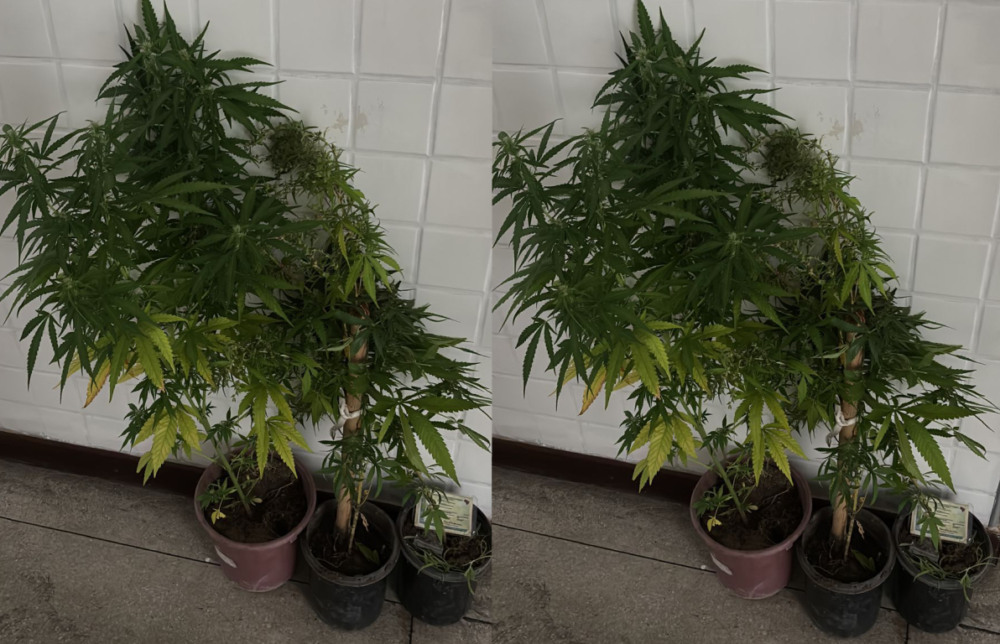 - Durante buscas no interior do imóvel, os agentes localizaram e apreenderam três pés de maconha no local.