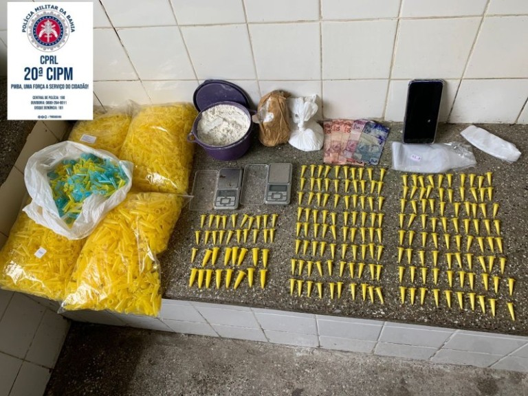 Pinos de cocaína, balança e outros acessórios foram apreendidos, no início da tarde desta segunda-feira (18), no município de Santo Amaro, por equipes da 20ª Companhia Independente de Polícia Militar (CIPM). Um suspeito foi achado com o material e conduzidos à delegacia.