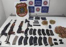 Com o bando foram apreendidos dois fuzis russos modelo AK 47, calibre 7,62, um fuzil calibre 5,56, duas pistolas austríacas, 20 carregadores e uma granada.