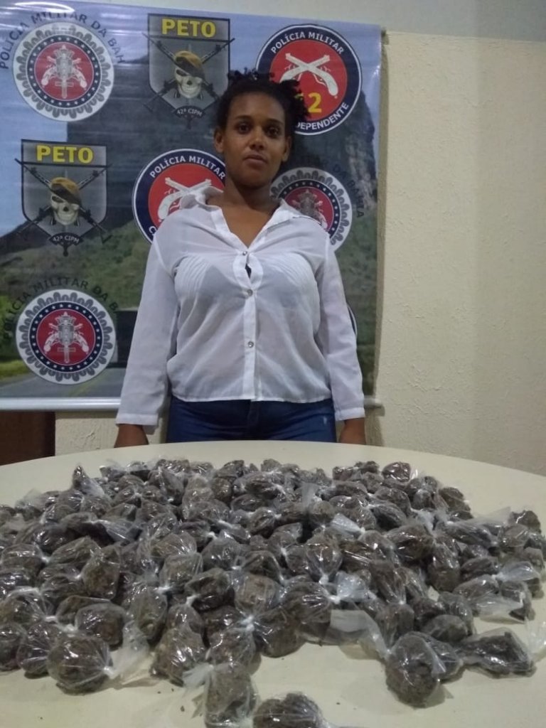 Uma traficante que usava ônibus intermunicipal para levar drogas de Salvador até o município de Lençóis foi presa, na madrugada desta quinta-feira (7). Equipes da 42 Companhia Independente da Polícia Militar (CIPM/Lençóis) flagraram Larissa de Jesus Cardoso com 285 dolões de maconha embrulhados.