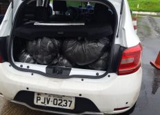 O nervosismo do condutor do carro modelo Sandero, placa PJV 0337, chamou a atenção dos policiais, que realizaram a abordagem. Na mala do automóvel, cinco sacolas plásticas pretas embalavam 40 quilos da erva colhida recentemente.