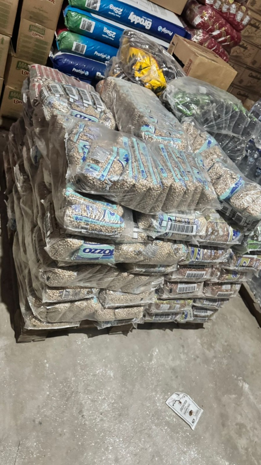 No imóvel, os investigadores encontraram e apreenderam mais uma quantidade de fardos de feijão, além de diversas caixas de calçados novos sem documentação fiscal. Após análise técnica do material, os agentes identificaram que os itens pertencem a uma carga do roubo ocorrido em setembro de 2024, com carga de aproximadamente R$ 900 mil.