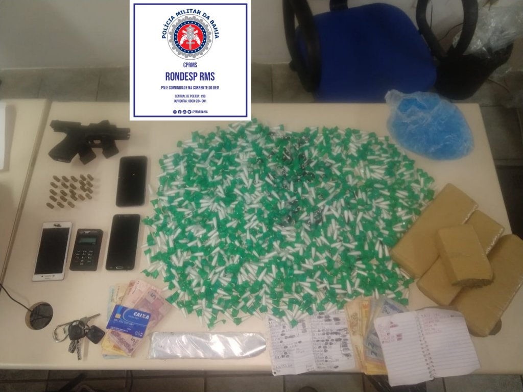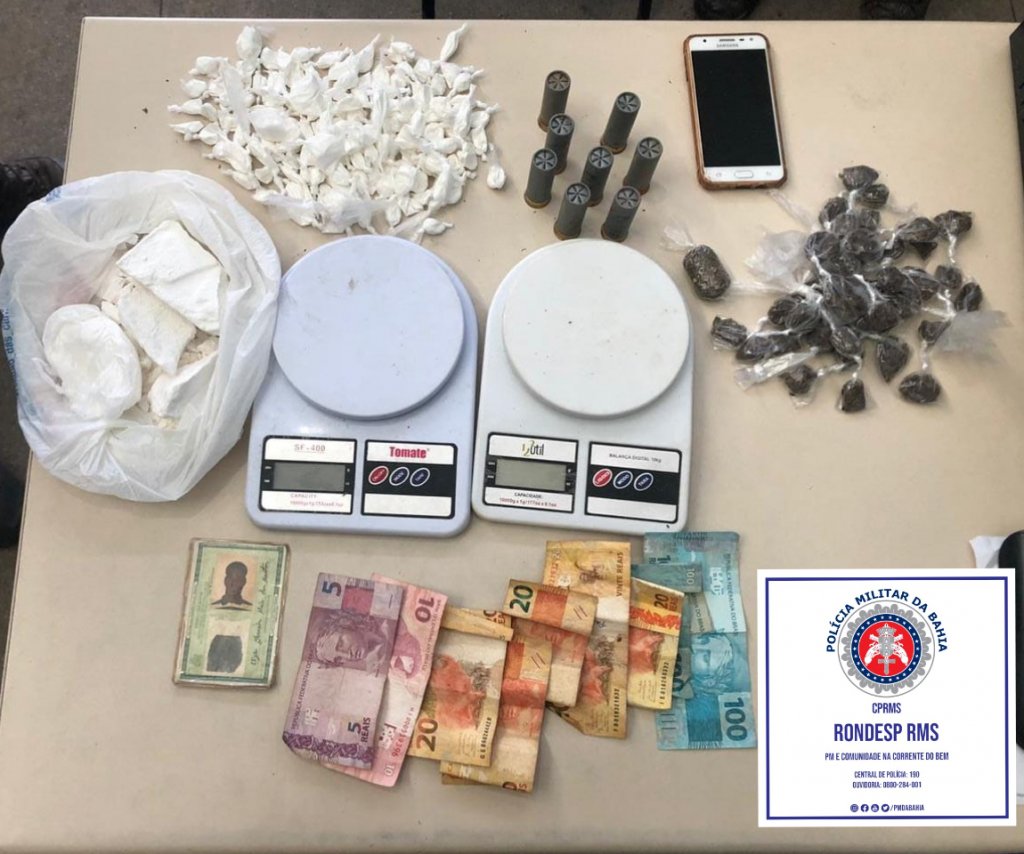 Em Candeias, por volta das 16h, as guarnições realizavam patrulhamento no bairro de Ouro Negro, quando abordaram um homem e com ele encontraram 41 trouxas de maconha, 139 porções de cocaína, duas balaças, munições e R$ 315. A ocorrência foi registrada na 20ª DT.