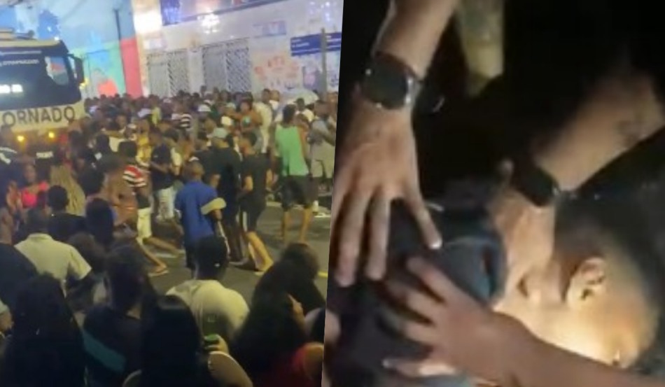 Vídeos que circulam nas redes sociais mostram o tumulto e a ação dos policiais. Em uma das gravações, é possível ver o soldado caído no chão sendo socorrido por outras pessoas.