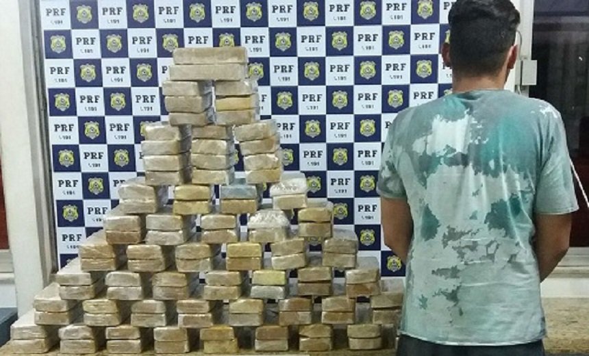 Um homem de 33 anos foi preso com 100 kg de crack, na madrugada desta sexta-feira (16/3), em Vitória da Conquista, no sudoeste da Bahia. O flagrante aconteceu por volta das 2h50 no KM 830 na BR 116, quando a Polícia Rodoviária Federal (PRF) abordou um veículo com placa de São Paulo.