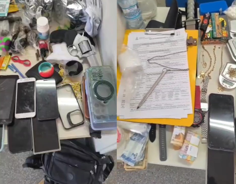 Durante a abordagem, os agentes apreenderam um revólver, balanças de precisão e porções de drogas, além de aparelhos celulares, correntes e mais de R$ 20 mil em dinheiro.