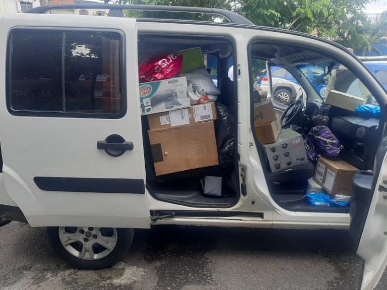 No automóvel foram encontrados produtos eletrônicos. Um homem que dirigia o veículo foi capturado e encaminhado à Delegacia de Repressão a Furtos e Roubos de Veículos (DRFRV).
