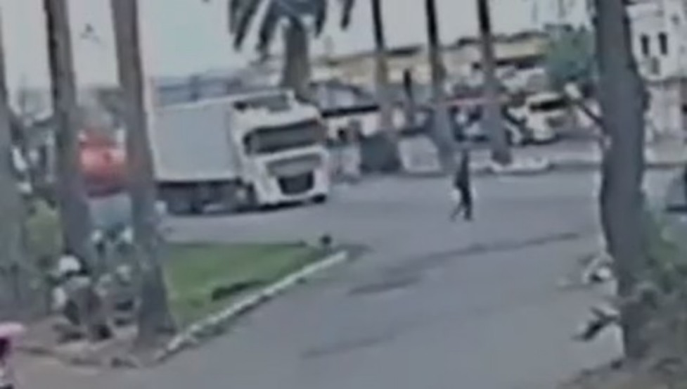 Uma câmera de segurança registrou o momento do acidente. Nas imagens, é possível ver a vítima atravessando lentamente a pista quando um caminhão se aproxima. O condutor chega a buzinar, mas não consegue frear a tempo de evitar a colisão.