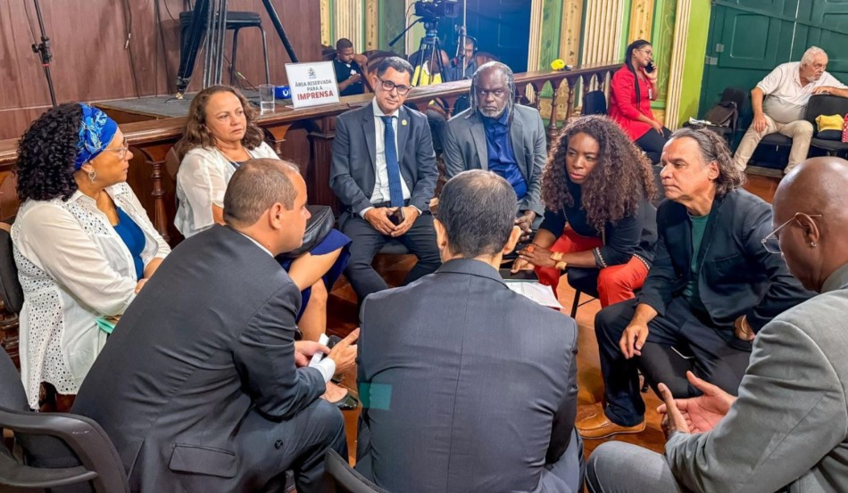 Antes do início da sessão, a bancada de oposição se reuniu no Plenário Cosme de Farias. Eles defenderam a retirada do projeto para permitir a abertura de negociações e a construção de um acordo com os representantes do funcionalismo.