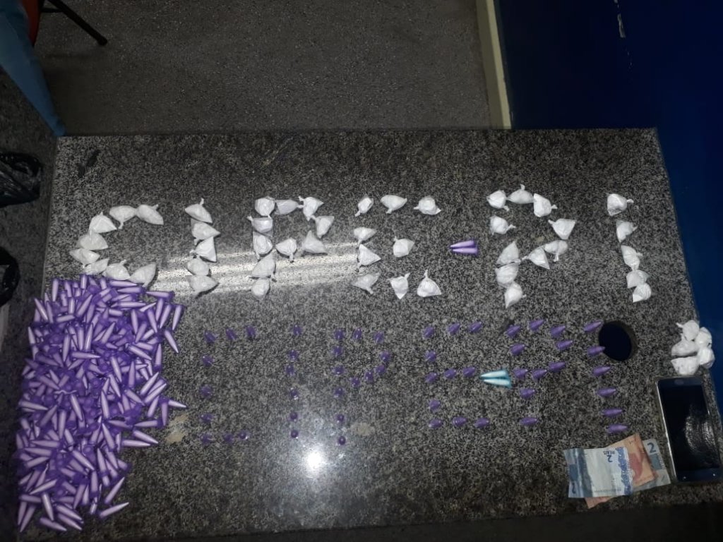 Integrantes da Companhia Independente de Policiamento Especializado (Cipe) Polo Industrial prenderam, na noite de quinta-feira (29), em Camaçari, Região Metropolitana de Salvador, Mateus da Costa Sacramento, 19 anos, com 600 pinos de cocaína e um saco de maconha.