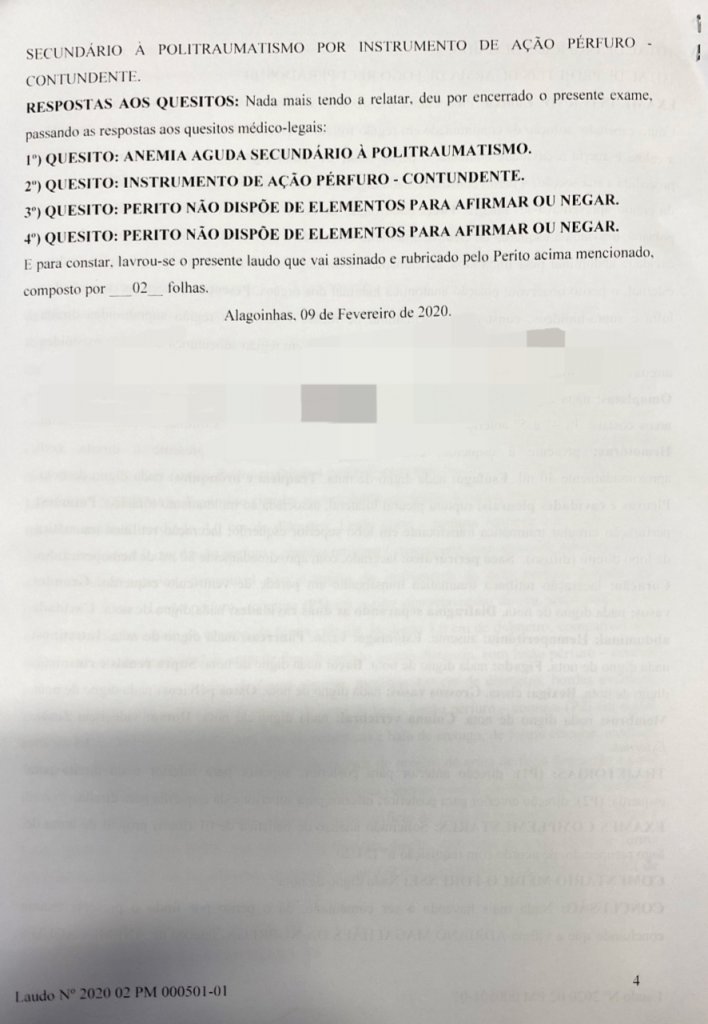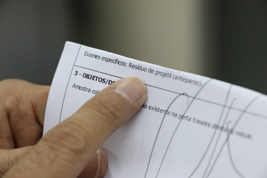 A perícia da Coordenação de Engenharia Legal vai relatar qual material causou os danos no escudo. "Olhando preliminarmente enxergamos duas marcas provenientes de impactos relevantes. As equipes agora analisarão se existem fragmentos de chumbo ou cobre, presentes em projéteis", explicou o diretor do DPT, Élson Jeffesson.