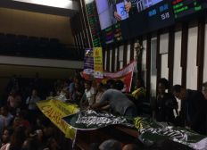 Em protesto contra a reforma adminitrativa proposta pelo governador da Bahia, Rui Costa, servidores estaduais quebraram a porta de vidro da entrada da Assembleia Legislativa do Estado (Alba) e invadiram a Casa, na tarde desta segunda-feira (11). O clima é tenso no local.