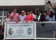 Haddad assistiu à missa ao lado da mulher, Ana Estela, e da vice na chapa, Manuela D'Ávila.