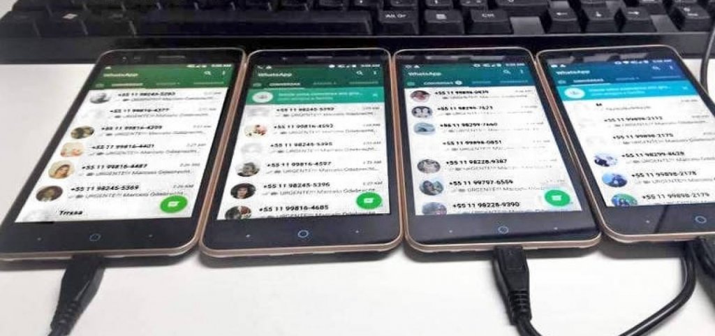 As imagens mostram caixas com chips de celulares em cima de mesas da empresa, vários aparelhos conectados a um computador e com o WhatsApp Web aberto, além de fotos de monitores com registros de sistemas internos da companhia. Em uma das imagens, é possível ler o início da frase “Urgente: Marcelo Odebrecht delata Fernando Haddad”.