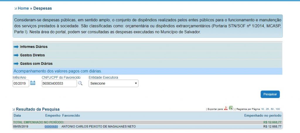 No site que calcula o que é empenhado e o que é pago, aparece que o valor, de fato, entrou na conta do prefeito da capital.