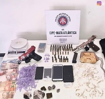 Ao fim da ação, os policiais apreenderam as armas, uma motocicleta com restrição de roubo, 28 munições, 142 embalagens para armazenar drogas e porções de cocaína, crack e maconha. Os materiais e todo o grupo criminoso foram encaminhados para a Delegacia Territorial de Nova Viçosa.