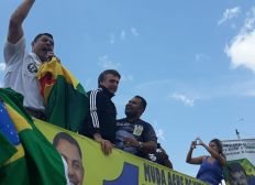 A legenda argumenta, ainda, que durante o comício o candidato do PSL segurou um tripé como se fosse uma arma e disse: