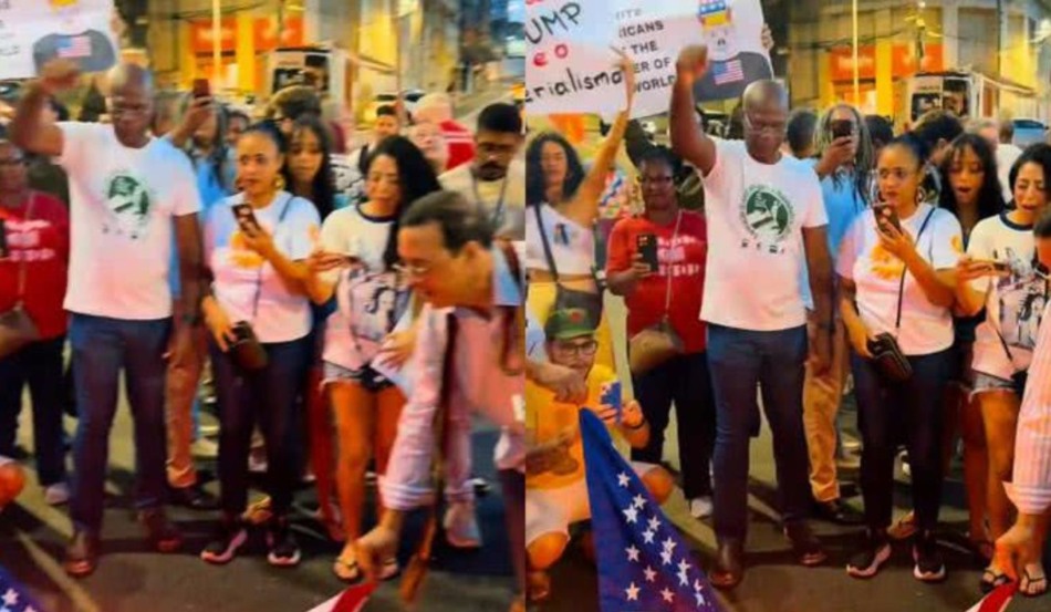 Durante um ato realizado no Centro de Salvador, nesta segunda-feira (5), o deputado estadual Hilton Coelho (PSOL) e o vereador Hamilton Assis (PSOL) queimaram uma bandeira dos Estados Unidos. O gesto foi uma forma de protesto contra a atuação do governo norte-americano na Venezuela.