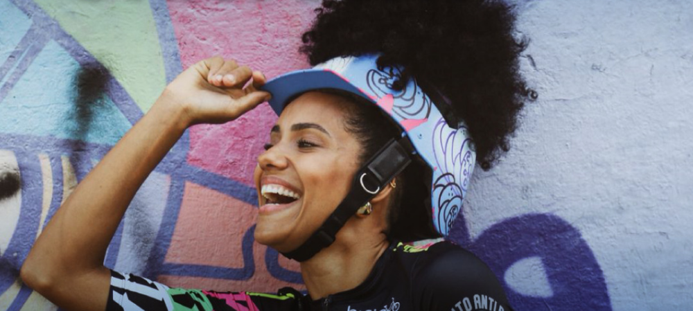 • Capacetes com abertura superior, idealizados pela Bici Preta, distribuídos gratuitamente para pessoas com cabelos afro.