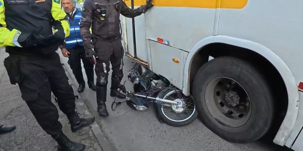 Uma moto ficou presa embaixo de ônibus após acidente. O caso aconteceu na manhã desta quinta-feira (9), na Avenida Mário Leal Ferreira, mais conhecida como Bonocô, em Salvador.