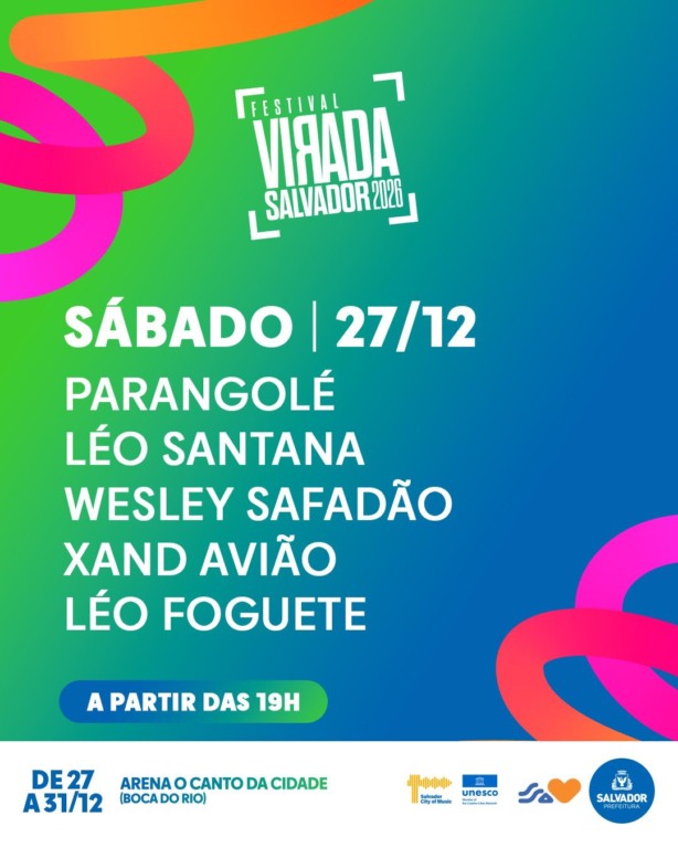 O primeiro dia oficial do Festival Virada Salvador 2026 promete agitar a capital baiana. O evento começa neste sábado (27), com shows a partir das 19h, na Arena O Canto da Cidade, na Boca do Rio.